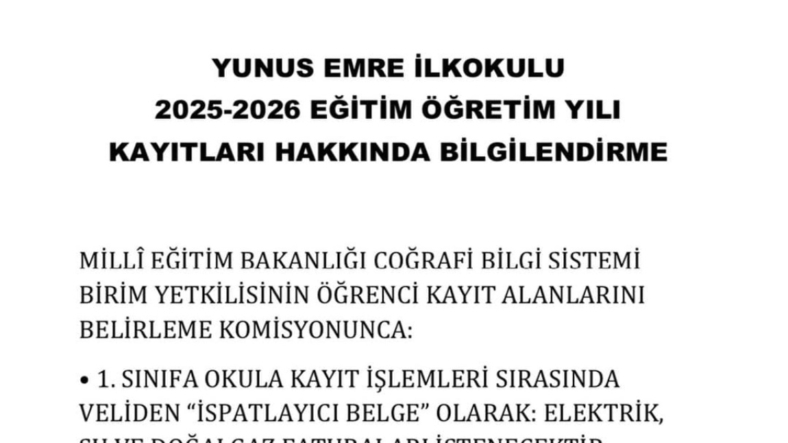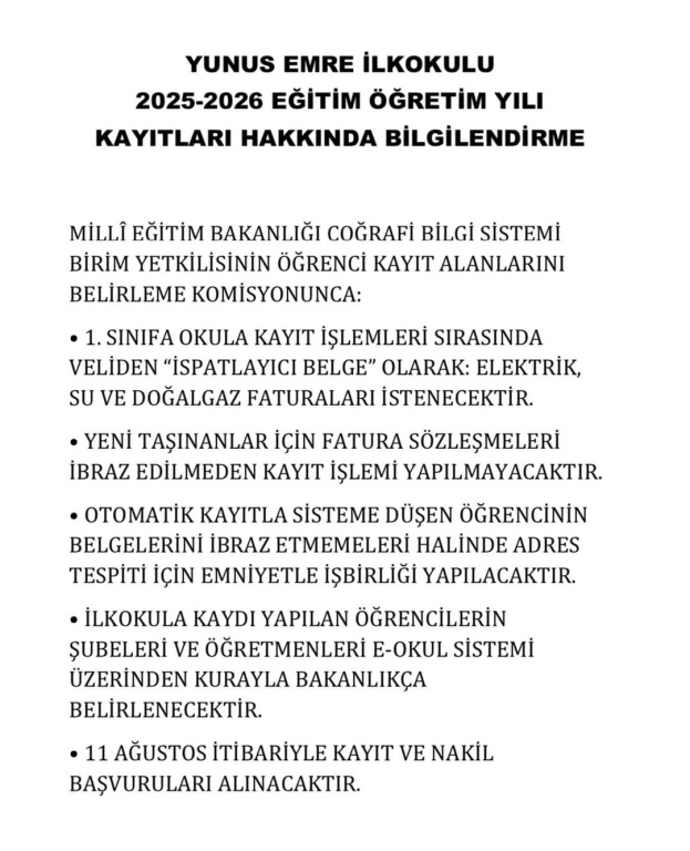 2025 - 2026 EĞİTİM ÖĞRETİM YILI KAYITLARI HAKKINDA BİLGİLENDİRME